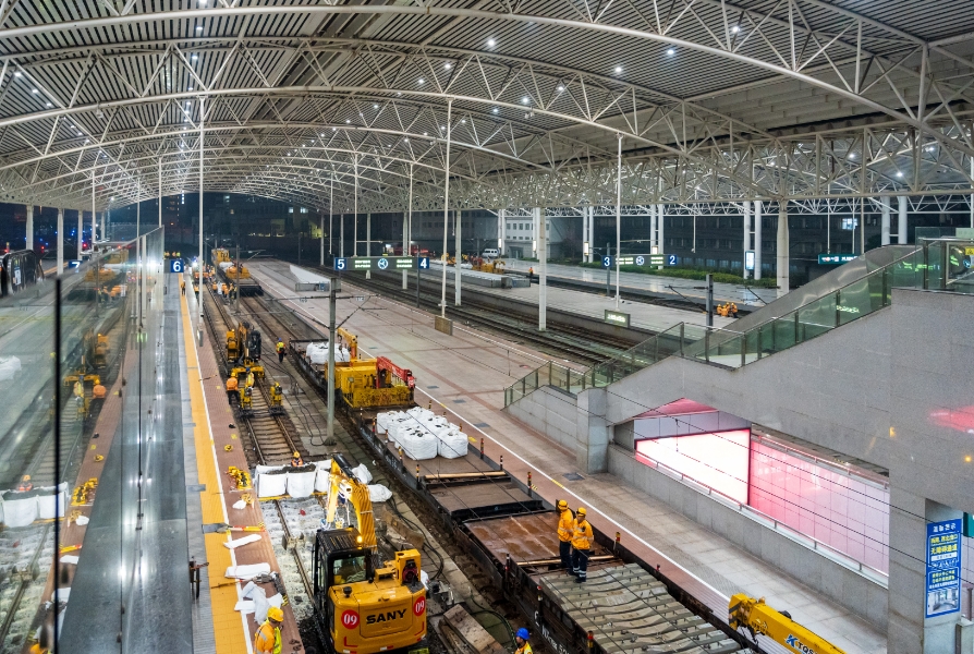 凌晨近4时,“天窗”结束,施工人员和机械有序撤出上海站。此时,夜色中的车站又一次恢复了短暂的宁静。当天,施工人员累计更换了122根枕木,整个工期预计将持续到今年8月底。