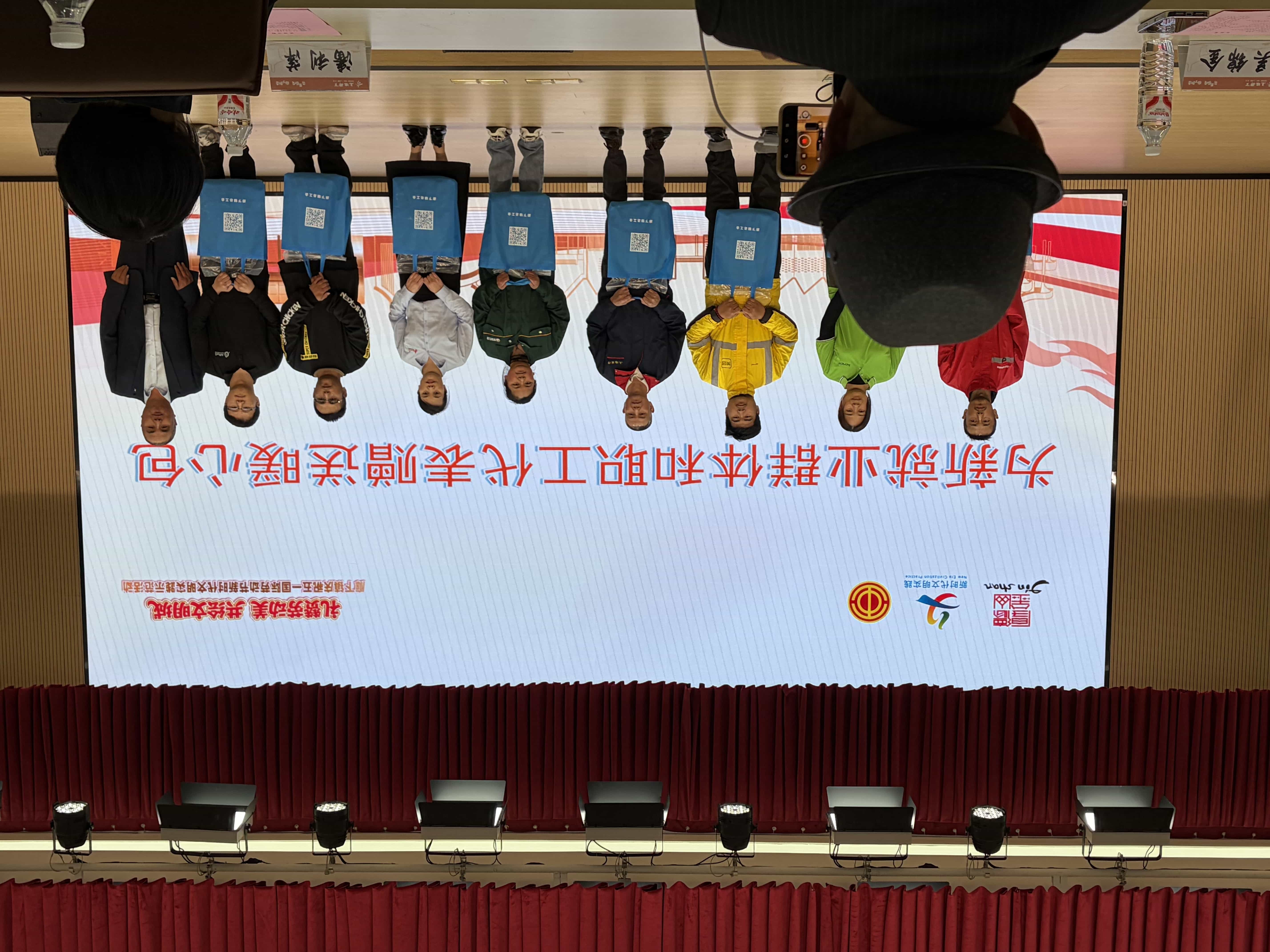 “咚咚咚——”铿锵有力的腰鼓《中国结》率先点燃全场,鼓点激昂、红绸翻飞,瞬间将气氛推向第一个高潮。台下,不少职工随着节奏轻轻拍手,脸上洋溢着自豪的笑容。两位劳模工匠代表走上舞台,分享自己扎根岗位、精益求精的故事。没有豪言壮语,只有日复一日的坚守与钻研。现场掌声久久不息,不少年轻职工目光灼灼,满是敬意。